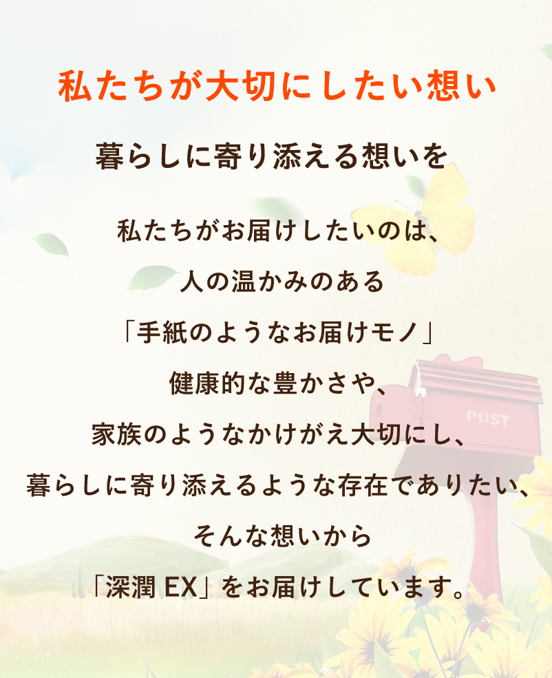 「深潤EX」に含まれる成分は、天然のものから抽出した成分です。